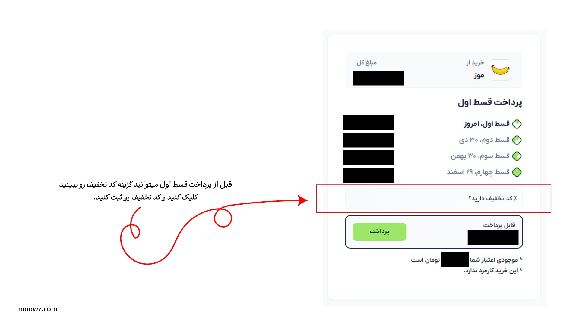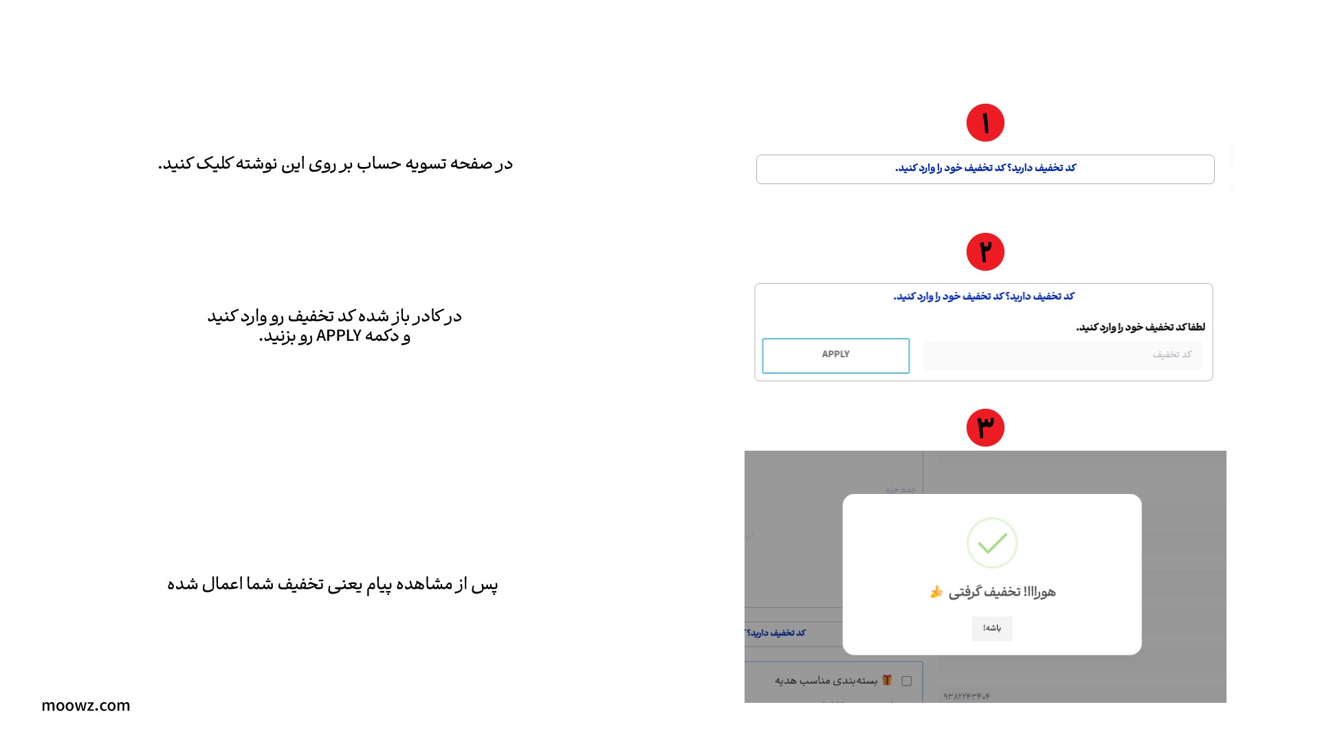 - اول توی سایت موز دات کام کد تخفیف سایت رو وارد میکنی